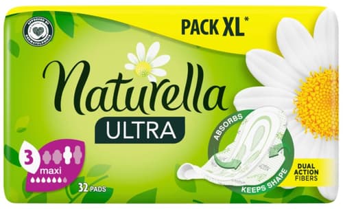 Jemné vložky Naturella Ultra Maxi s křidélky, díky kterým drží pevně na svém místě – 32 ks.