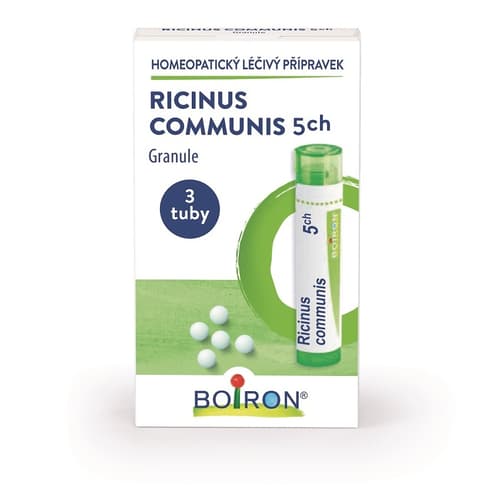 RICINUS COMMUNIS 5CH je homeopatický léčivý přípravek bez schválených léčebných indikací. Balení obsahuje 3 tuby po 4g granulí.