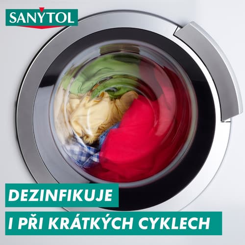 Dezinfekční přípravek na prádlo a pračky. Sanytol ničí při všech teplotách bakterie, viry, plísně, zbytky pracího prášku a vodního kamene a zanechává pocit svěžesti.