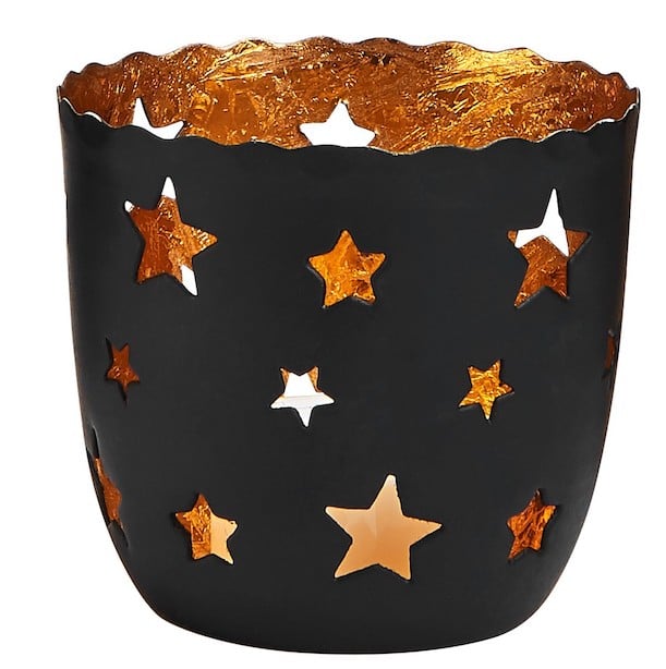 Černý svícen na čajovou svíčku s vyraženými hvězdami. Dodá záři svíček dokonalou atmosféru a vnitřní strana v antické zlaté navodí okouzlující světelné efekty.