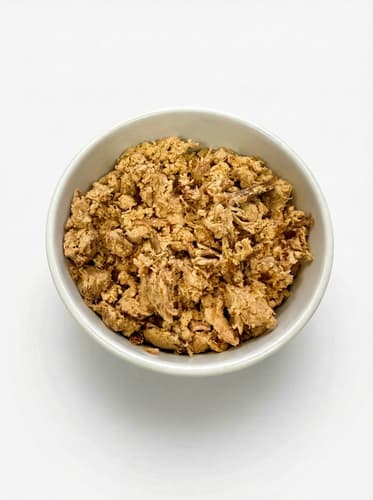 Vepřová dušená plec s tukovým krytím je natrhaná na jemná vlákna. Je dochucená sterilovanými rajčaty, sušenou zeleninou a kořením.