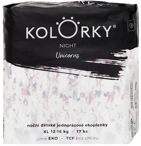 Kolorky EKO Noční jednorázové plenky night XL jednorožci (12–16 kg) 17 ks