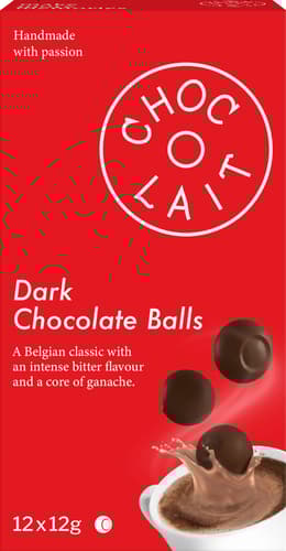 Choc-o-lait Balls Hořká čokoláda144 gThis product is no longer available.Country: according to the current offerplease contact customer support for the exact information