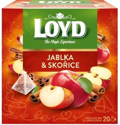 Aromatizovaný ovocno-bylinný čaj s příchutí jablka a skořice.