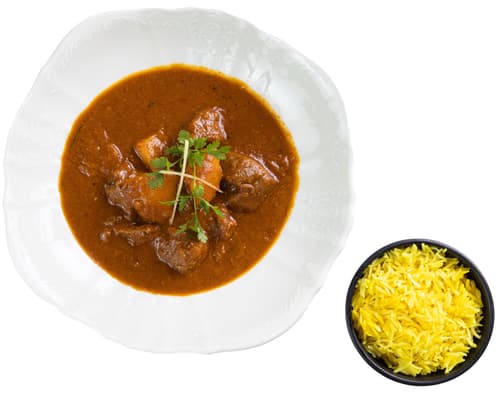 Vepřové Vindaloo s šafránovou rýží od Mahavira Kanswala