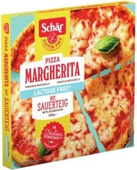 Schär Pizza Margherita je skvělá volba pro milovníky pizzy s dietními omezeními. Tato italská hluboce mražená pizza je bez lepku i laktózy, s kváskovým korpusem, rajčatovou omáčkou a sýrem mozzarella bez laktózy. Rychle připravená, stačí ji upéct v troubě. Balení 300 g.