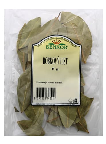 Benkor bobkový list je sušený list vavřínu vznešeného, ideální koření pro zemitou a kořeněnou chuť. Skvěle se hodí do marinád, omáček nebo k nakládané zelenině. Tento kvalitní český produkt od firmy Benkor, která má tradici již od roku 1932, dodá vašim pokrmům jedinečný nádech. Balení 5 g.