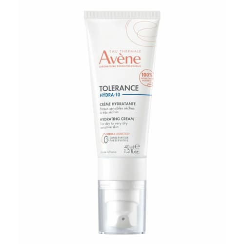 Avene Tolerance Hydra-10 je hydratační krém 100% přírodního původu s vysokou tolerancí, bez konzervačních látek a parfemace na obličej, krk a oční okolí. Tento hydratační krém je určený pro suchou až velmi suchou dehydratovanou pokožku. Je vhodný pro dospělé, děti i kojence. Složení obohacené o kyselinu hyaluronovou intenzivně hydratuje pleť po dobu až 48 hodin. Tolerance Hydra-10 krém podporuje přirozenou hydrataci pokožky a přispívá k jejímu každodennímu komfortu. Zachovává přirozenou rovnováhu kožního mikrobiomu díky svému patentovanému složení napodobujícímu pokožku. Příjemná a výživná textura tohoto krému na suchou pleť bez mastného efektu trvale hydratuje. Antikontaminační pumpička Sterile Cosmetic dokonale chrání jeho složení, a to bez konzervačních látek a bez parfemace. Dlouhotrvající hydratace: kyselina hyaluronová přírodního původu, která je schopna udržet až 1000násobek své hmotnosti ve vodě, glycerin rostlinného původu, emulgátory přírodního původu. Uklidňuje a zklidňuje: vysoce koncentrovaný v termální vodě Avene, triglyceridy přírodního původu, bambucké máslo. Obsah balení je 40 ml.