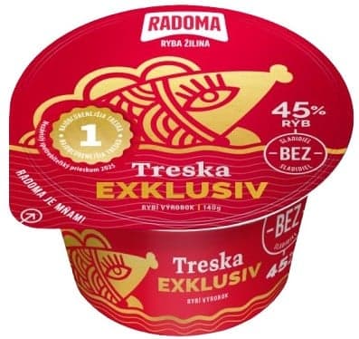 Rybí salát z vařeného masa tresky alijašské. Obsahuje vyšší podíl treskovitých ryb (45 %).