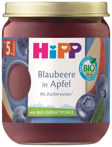 Ovocný příkrm v BIO kvalitě z jablek a borůvek. Vhodný pro děti od ukončeného 4.–6. měsíce.