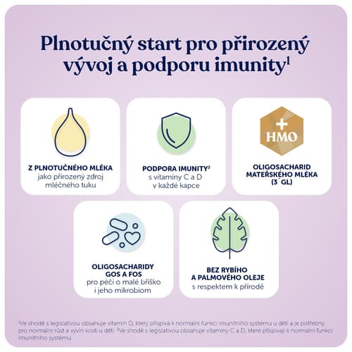Pokračovací kojenecké mléko vhodné pro děti od ukončeného 6. měsíce. Základem receptury je plnotučné kravské mléko od volně se pasoucích krav s přirozeným obsahem mléčného tuku. Tato receptura vznikla na základě 60letého výzkumu a vývoje a byla inspirována složením mateřského mléka.