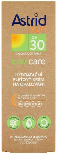 Astrid Sun Eco Care pleťový krém na opalování SPF 3050 mlTento produkt již není v nabídce.Země původu: dle aktuální nabídkypro přesnou informaci kontaktujte zákaznickou podporu