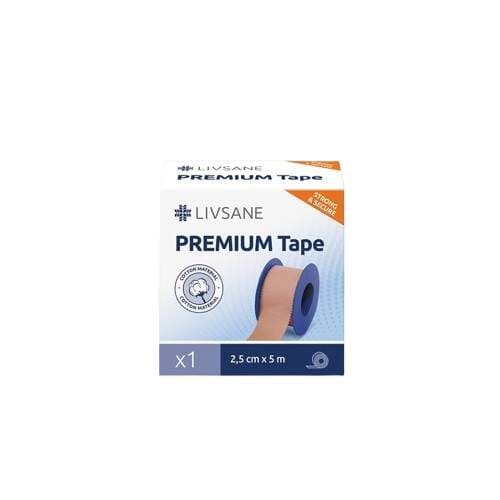 Zdravotnický prostředek. Livsane tejpovací páska Premium slouží k fixaci obvazů a dlah. Pro zpevnění vazů při sportu. Vyrobena z bavlny. Tělová barva. Hypoalergenní. Neobsahuje latex. Balení obsahuje 1 ks pásky o rozměru 2.5 cm x 5 m.