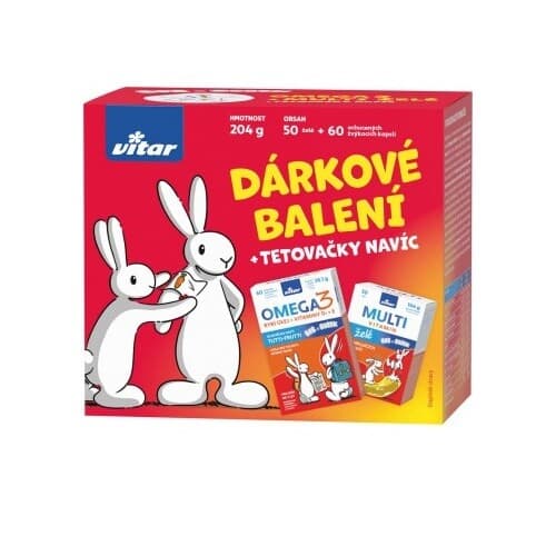 Vitar Kids Omega cps.60+Multivit.želé 50ks+dárek