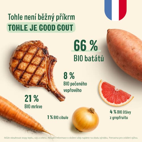 Good Gout je francouzská prémiová dětská BIO výživa pro malé gurmány, která kombinuje nejnovější vědecké poznatky s vyhlášeným francouzským gurmánstvím. Spolupracuje s odborníky na výživu a michelinským šéfkuchařem Christophem Hayem. Receptury obsahují maximálně dvě hlavní složky, díky nimž se děti naučí rozpoznávat jednotlivé chutě a vytvoří si správné stravovací návyky.