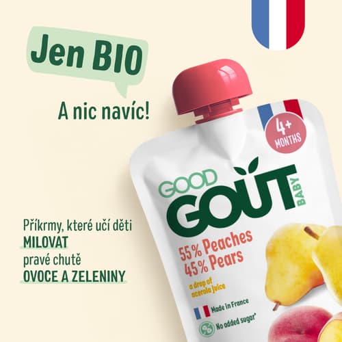 Good Gout je francouzská prémiová dětská BIO výživa pro malé gurmány, která kombinuje nejnovější vědecké poznatky s vyhlášeným francouzským gurmánstvím. Spolupracuje s odborníky na výživu a michelinským šéfkuchařem Christophem Hayem. Receptury obsahují maximálně dvě hlavní složky, díky nimž se děti naučí rozpoznávat jednotlivé chutě a vytvoří si správné stravovací návyky.