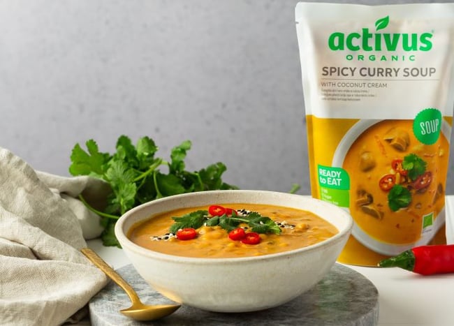 Activus BIO Pikantní curry polévka s kokosovým mlékem a houbami shiitake