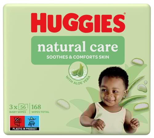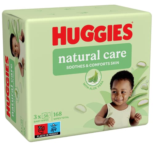 Huggies® Natural Aloe Vera Triplo dětské vlhčené ubrousky, 3×56 ks