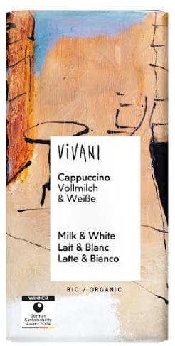 Mléčná čokoláda v BIO kvalitě je ochucená espressem a pokrytá vrstvou bílé čokolády obsahující sušenou smetanu a výtažek z Bourbon vanilky. Čokoláda je slazená přírodním třtinovým cukrem a neobsahuje sójový lecitin ani žádný jiný emulgátor.