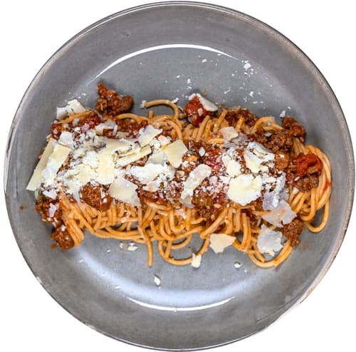 Spaghetti s boloňským ragú a parmezánem z Ristorante Piazza