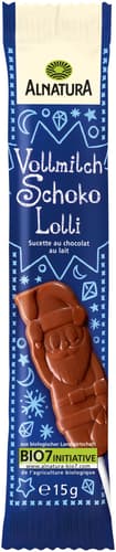 Vánoční lízátko ve tvaru Santy z mléčné čokolády v BIO kvalitě.