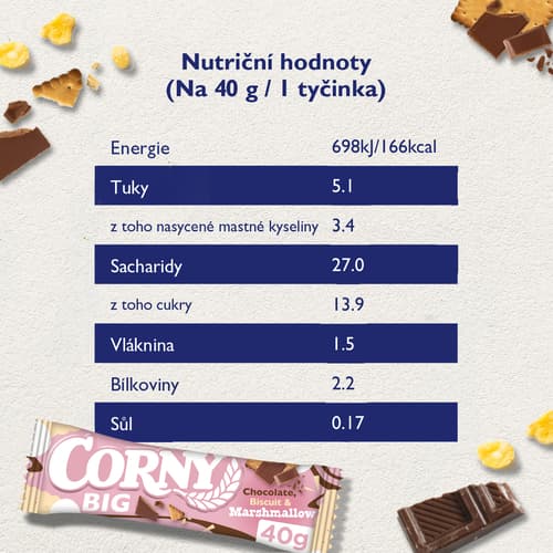 Corny BIG Cereální tyčinka s marshmallow v mléčné čokoládě50 gTento produkt již není v nabídce.Země původu: dle aktuální nabídkypro přesnou informaci kontaktujte zákaznickou podporu