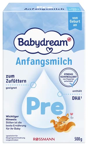Babydream Počáteční mléčná kojenecká výživa PRE500 gTento produkt již není v nabídce.Země původu: dle aktuální nabídkypro přesnou informaci kontaktujte zákaznickou podporu