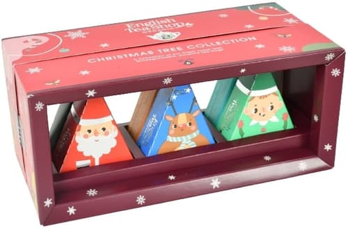 Kolekce obsahuje 6 čajových vánočních pyramidek k zavěšení na stromek s různými příchutěmi.