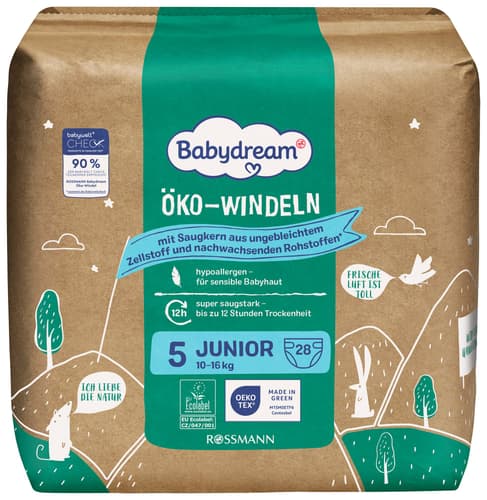 Babydream Jednorázové ekologické plenky junior, vel. 5 (10–16 kg)