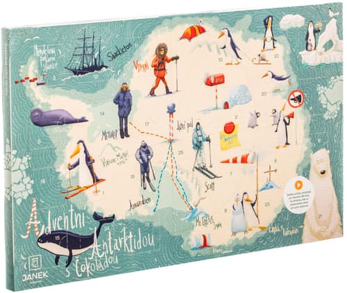 Čokoládovna Janek Adventní kalendář Antarktidou a mluveným slovem - Mix mléčné, hořké a bílé čokolády
