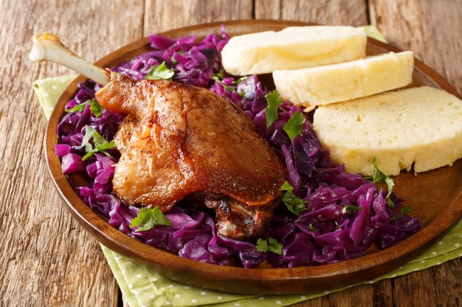 Sáček s husími stehny vložte předem vyhřáté trouby na 210 °C, pečte po dobu cca 20–30 minut do získání zlatavého povrchu.