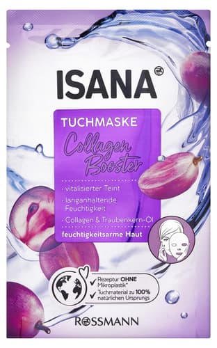 Pleťová maska s kolagenem a výtažkem z hroznových jader podporuje přirozený proces regenerace pokožky a zjemňuje hloubku vrásek. Kolagen podporuje přirozenou strukturu pokožky a dodává jí pevnost a hydrataci.