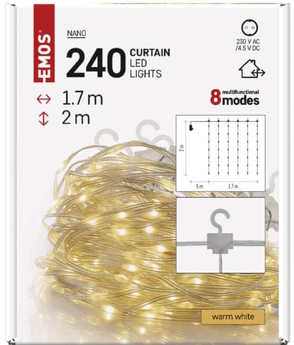 Emos LED vánoční řetěz záclona, teplá bílá, 1,7×2 m1 ksTento produkt již není v nabídce.Země původu: dle aktuální nabídkypro přesnou informaci kontaktujte zákaznickou podporu