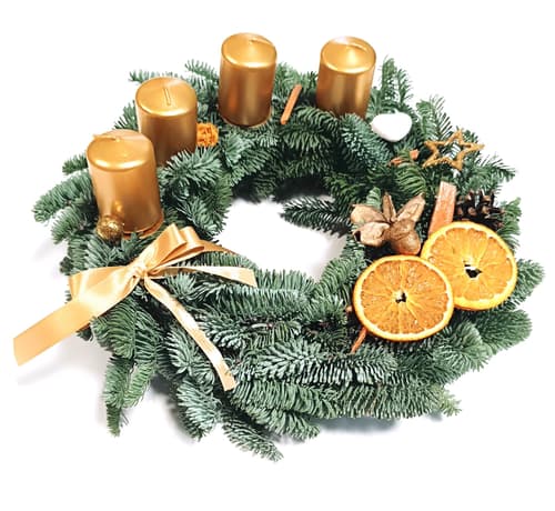 Adventní věnec přírodní s pomerančem Ø 30 cm (z neopadavé jedle Nobilis)