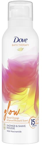Sprchová a holicí pěna Bath Therapy Glow s vůní červeného pomeranče a rebarbory. Pěna obsahuje niacinamid, který pokožku vyhlazuje a aktivně bojuje proti jemným vráskám a nedokonalostem.