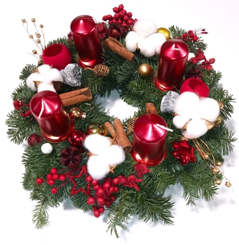 Přírodní adventní věnec červený s bavlníkem Ø 30 cm1 pcThis product is no longer available.Country: according to the current offerplease contact customer support for the exact information
