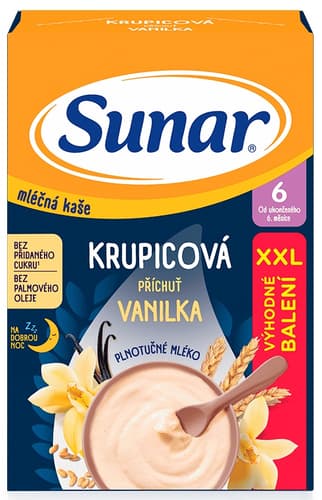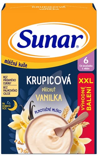 Sunar Mléčná krupicová kaše na dobrou noc vanilková XXL340 gTento produkt již není v nabídce.Země původu: dle aktuální nabídkypro přesnou informaci kontaktujte zákaznickou podporu