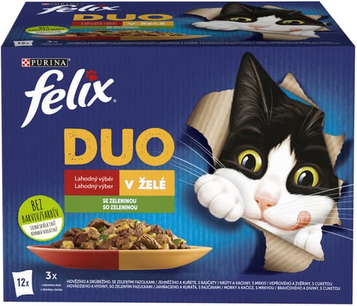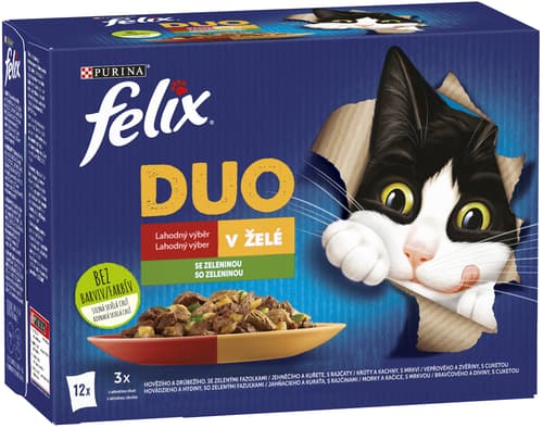 Felix Fantastic DUO kapsičky pro kočky hovězí a drůbeží, jehněčí a kuře, krůta a kachna, vepřové a zvěřina 12×85 g
