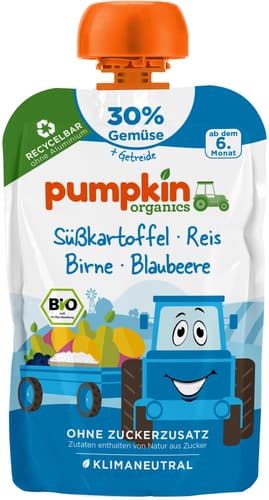 Pumpkin Organics BIO Zeleninové pyré ze sladkých brambor, rýže, hrušek, a borůvek