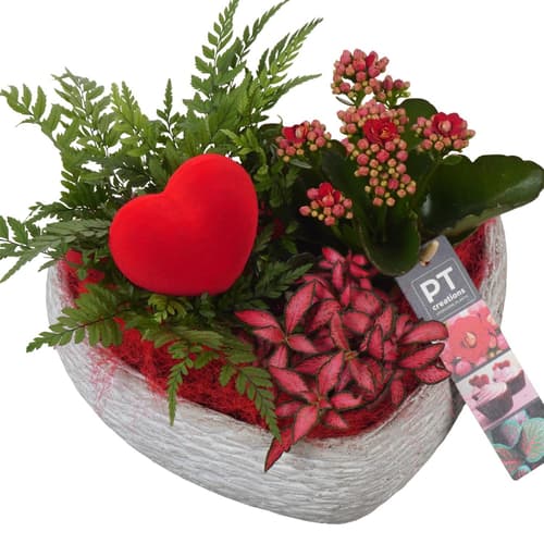 • složení: kalanchoe, fitónie, kapradina, dekorativní srdce,  červené dekorační vlákno