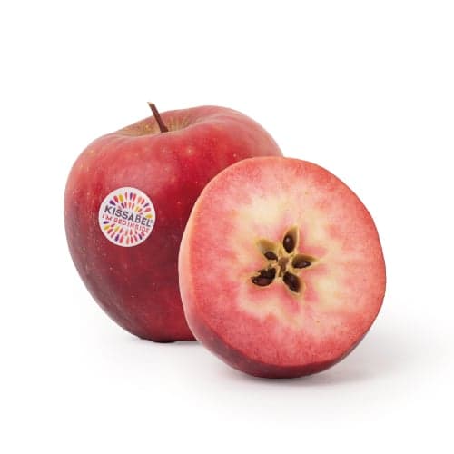 Jablko odrůdy Kissabel® má intenzivně červenou slupku a charakteristické lenticely (pigmentové tečky). Co však dělá toto jablko opravdu výjimečným, je jeho jasně červená dužnina a skvělá chuť s tóny lesních plodů.