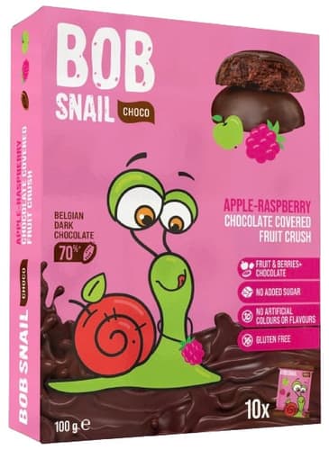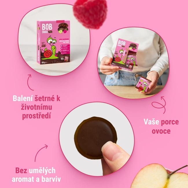 Šnek Bob Ovocná pochoutka v čokoládě jablko a malina