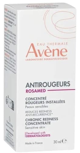 AVENE Antirougeurs ROSAMED Koncentrát proti chronickému zarudnutí je první přípravek pro péči o pleť s dlouhodobým účinkem na příčinu zarudnutí. Péče Antirougeurs ROSAMED, vyvinutá ve spolupráci s dermatology, snižuje výskyt zarudnutí a svým účinkem proti jeho návratu pomáhá omezit jeho opětovný výskyt. Redukuje i trvalé zarudnutí. Okamžitě zklidňuje pocity horka a hydratuje po dobu 24 hodin, aby obnovila příjemný pocit pokožky. Výsledkem více než tříletého výzkumu je účinná látka Angiopausine z ostropestřce mariánského, která v množství 6 % zmírňuje povrchovou hypervaskularizaci. Hlavní výhody: Aktivní látka 100% přírodního původu. Lehký, nemastný krém. Bez parfemace. Pro citlivou a reaktivní pokožku. Vynikající také jako báze pod make-up. Zmírňuje chronické zarudnutí. Okamžitě zklidňuje. 24hodinová hydratace. Balení obsahuje 30 ml.