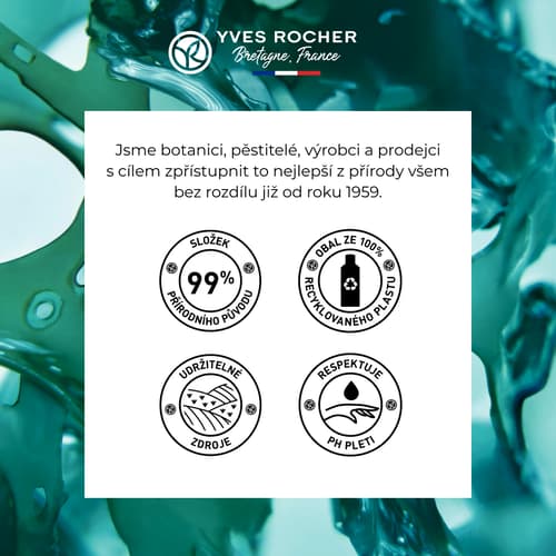 Aktivní rostlinná látka mikrořasy Tetraselmis plavou na povrchu oceánů a produkují kyslík. Jejich fotosyntéza se odehrává na pomezí vody a vzduchu, díky čemuž je mimořádně efektivní. Mikrořasy Yves Rocher pěstuje u bretaňských pobřeží – zajišťují, aby se vyváženě rozmnožovaly a dohlíží na jejich dlouhodobou ochranu.