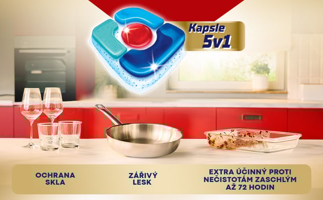 - Hloubkové čištění připálených zbytků jídla a usazené mastnoty; účinné i při krátkých cyklech a nízkoteplotních ekocyklech.