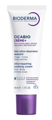 Cicabio Krém+ je ekobiologický a obnovující zklidňující krém, který napomáhá zajišťovat optimální proces hojení a pomáhá pokožce vrátit se do původního stavu. Je vhodný pro celou rodinu, včetně novorozenců, s výjimkou předčasně narozených dětí. Hloubkově obnovuje epidermis, aby se zabránilo vzniku jizev, zklidňuje svědění a nepříjemné pocity, ochraňuje pokožku před vnějšími vlivy díky své textuře s efektem "neviditelné náplasti" a snadno se nanáší a usnadňuje masáž jizev. Krém zachovává a obnovuje kožní mikrobiom, čímž pomáhá zajišťovat optimální proces hojení. Je vhodný na poškozenou pokožku (povrchové řezné rány, povrchové popáleniny, odřeniny), po estetickém zákroku (laser, chemický peeling), na čerstvá tetování a permanentní make-up, na rusty po planých neštovicích a krusty způsobené svěděním při atopickém ekzému, na jizvu po císařském řezu, epiziotomie i jizvu po odstranění znaménka, na dětské opruzeniny v plenkové oblasti a periorální dermatitidu. Díky ekobiologickému přístupu značky Bioderma, který bere pokožku jako zdroj inspirace, působí Cicabio Krém+ ve dvou úrovních: 1. respektuje přirozený proces hojení a za 2. optimalizuje přirozený proces hojení. Technologie Antalgicine™ zklidňuje nepohodlí a pocity svědění a svou texturou poskytuje efekt "neviditelné náplasti", která chrání pokožku před vnějšími nepříznivými vlivy a zároveň jí umožňuje dýchat. Zároveň usnadňuje pokožce obnovit se díky svému patentovanému komplexu Optimal repair, nepřetržitým zvlhčováním pokožky a obnovením diverzity mikrobiomu. Den za dnem je pokožka hloubkově obnovena a zklidněna. Balení obsahuje 40 ml.