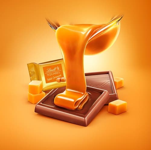 Kousky mléčné čokolády s karamelovou náplní od švýcarských mistrů čokolády Lindt.