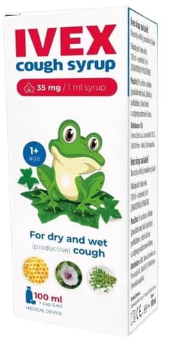 Ivex sirup je zdravotnický prostředek. Vhodný při suchém a vlhkém (produktivním) kašli, zklidňuje podráždění, chrání sliznici a podporuje odstranění hlenu. Vhodný pro děti od 1 roku. Balení obsahuje 200 ml sirupu a odměrku (5 ml).