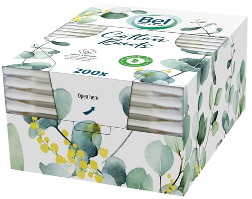 Vatové tyčinky Bel neobsahují žádné plasty a jsou tak šetrné k životnímu prostředí. Spolehnout se můžete i na jejich šetrnou péči o vaše uši díky hlavičce z bavlny a biologicky odbouratelného mikrovlákna.