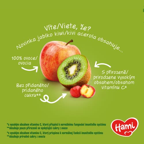 Hami Ovocný příkrm jablko, kiwi, acerola (4×100 g)400 gTento produkt již není v nabídce.Země původu: dle aktuální nabídkypro přesnou informaci kontaktujte zákaznickou podporu